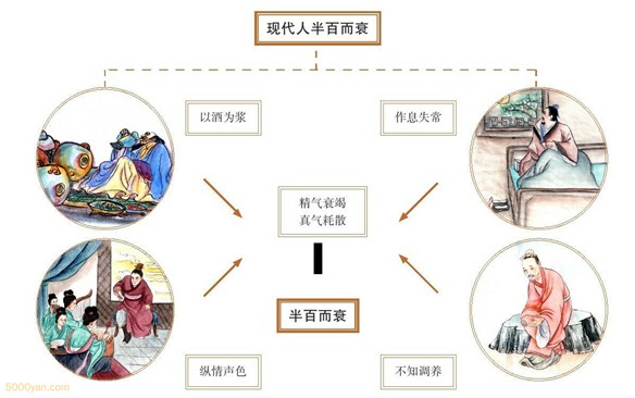 如何應用黃帝內經養生? 黃帝內經素問篇《上古天真論》指出: 黃帝問余聞上古之人,春秋皆度百歲而動作不衰;今時之人,年半百而動作皆衰者,時世異耶?人將失之耶? 岐伯對曰:上古之人,其知道者,法於陰陽,和於術數。飲食有節,起居有常,不妄作勞,故能形與神俱,而盡終其天年,度百歲乃去。