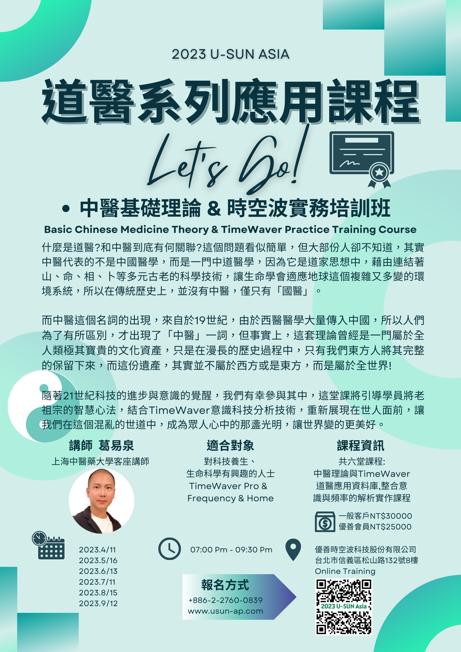 課程資訊: 共六堂課程- 中醫理論與TimeWaver道醫應用資料庫,整合意識與頻率的解析實作課程,課程影片複習