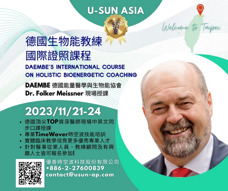 For those who have participated in the international courses organized by U-SUN TimeWaver, the long-awaited on-site training course will finally be launched again in 2023. U-SUN TimeWaver specially invited Dr. Folker, an internationally renowned doctor, to come to Taiwan to cultivate more outstanding professionals, targeting at medical practitioners, coaching consultants, and those interested in joining the course. There will be a lot of latest practical cases and research sharing; don't miss the professional skills training course of this TOP doctor from Germany, and the U-SUN TimeWaver professional consultant team will also have a communication forum with you simultaneously!